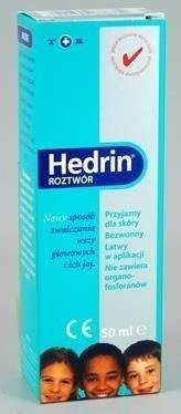 Działania niepożądane: Podczas stosowania Hedrin Roztwór może wystąpić niewielkie podrażnienie. U nielicznych osób obserwowano lekkie złuszczenie skóry głowy, swędzenie lub podrażnienie wokół oczu.