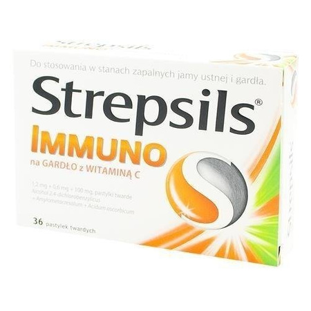 Wskazania: Lek Strepsils Immuno na Gardło z Witaminą C jest przeznaczony do stosowania w objawowym leczeniu stanów zapalnych jamy ustnej i gardła.