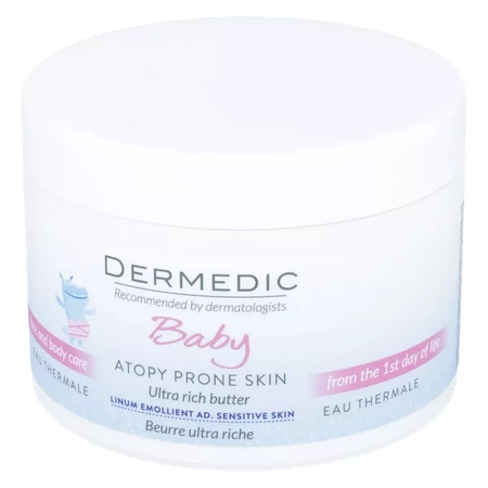 - Emolientowe masło do codziennej pielęgnacji nawilżająco-natłuszczającej dla skóry niemowląt i małych dzieci.