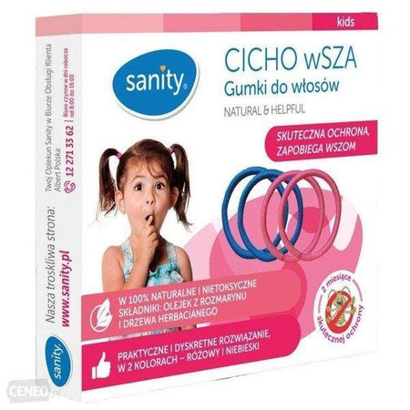 Gumki do włosów Cicho wSza Sanity to alternatywa dla przeciwszawiczych, płynnych i aerozolowych preparatów stosowanych na skórę głowy. Jedna gumka stanowi skuteczną ochronę na czas 2-3 tygodni!