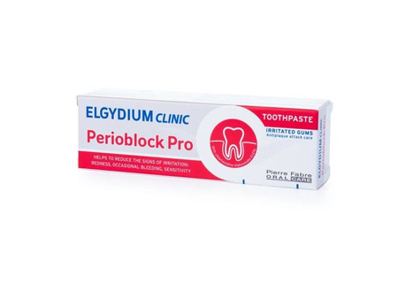 ELGYDIUM CLINIC Perioblock Pro to pasta do zębów opracowana w celu zapewnienia prawidłowej higieny jamy ustnej, do stosowania jako uzupełnienie profesjonalnego leczenia osłabionych dziąseł.