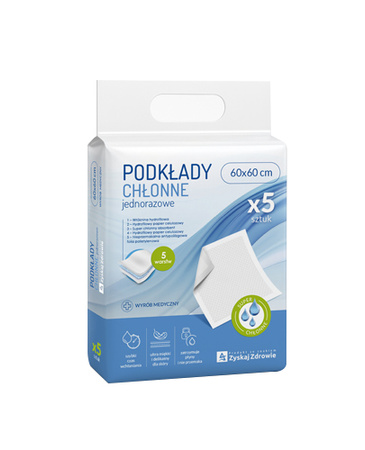 - Podkłady chłonne jednorazowe z firmy Zyskaj Zdrowie to wyrób medyczny który charakteryzuje się szybkim czasem wchłaniania, jest ultra miękki i delikatny dla skóry oraz zatrzymuje płyny i nie przemaka.